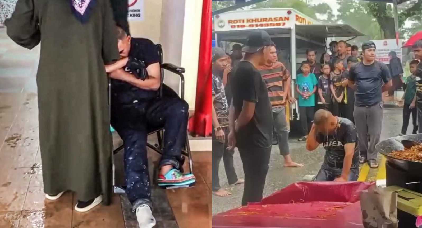 Lelaki OKU Merayu Kesakitan Ketika Dikasi Kasar Selepas Terlanggar Gerai – “Sakit, Minta Maaf”