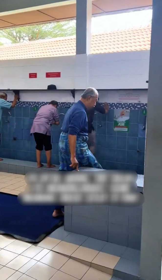 Menerusi hantaran yang dimuat naik oleh seorang pengguna @FOM Friends Of Muhyiddin di laman TikToknya, dapat dilihat Pengerusi Perikatan Nasional (PN) itu sedang menunggu giliran untuk mengambil air wuduk.