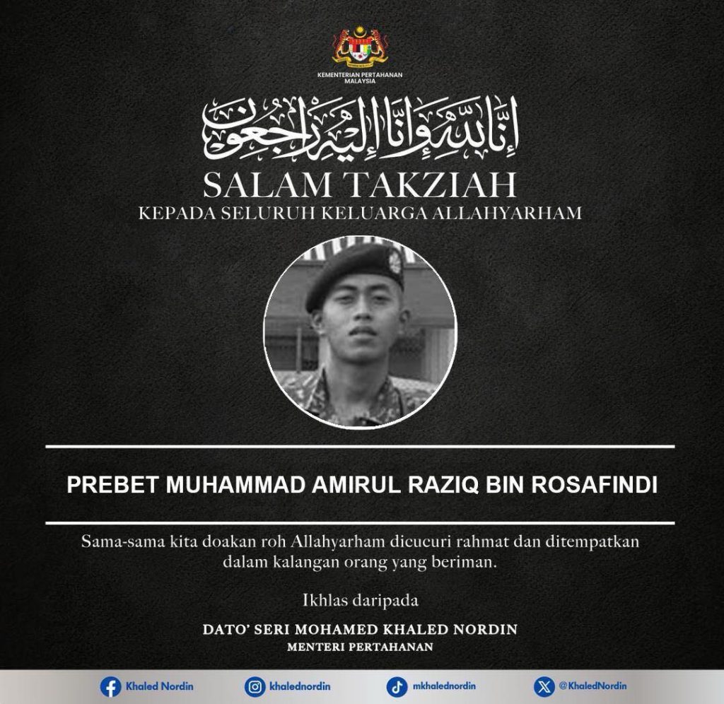 Al-Fatihah Prebet Amirul Raziq Meninggal Dunia, MINDEF Tegas Tidak Akan Kompromi