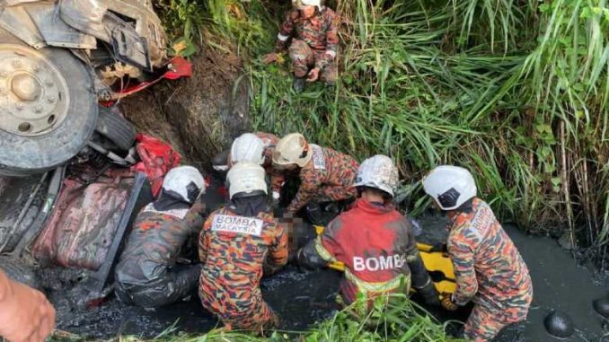 Pihak bomba yang berada di tempat kejadian terus bertindak melakukan kerja dalam usaha untuk mengeluarkan mangsa yang tersepit.