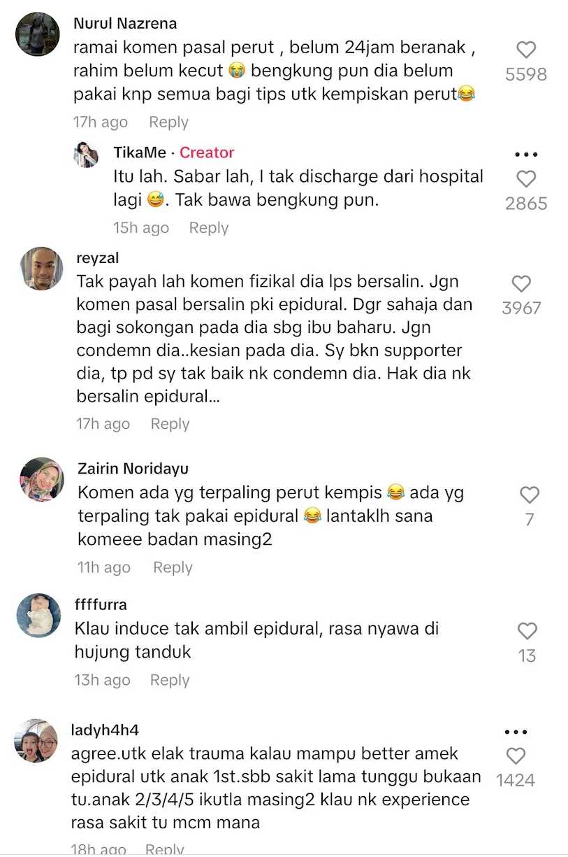 “Dh jumpa dh komen terpaling bersalin normal tnpa epidural,terpaling mak pndai jaga ank”