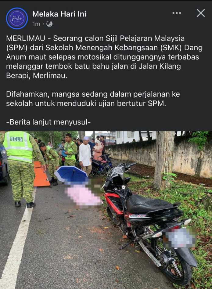 Hanya mampu terduduk lihat calon SPM maut dalam perjalanan duduki ujian bertutur Bahasa Melayu