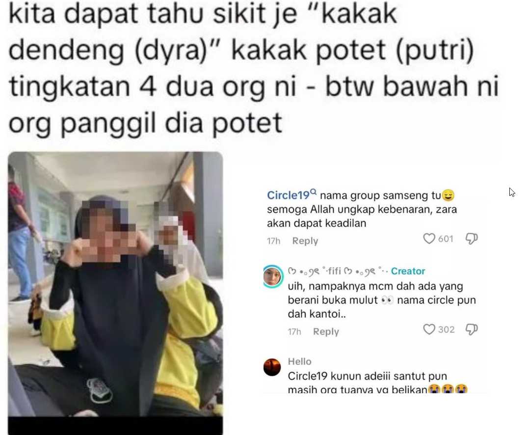 Muat naik anonim di platform seperti Threads mendakwa gambar-gambar itu memaparkan individu yang digelar “Kak Dedeng” dan “Kak Potet”, kononnya sebahagian daripada kumpulan rakan sebaya yang dirujuk sebagai “Circle19”.