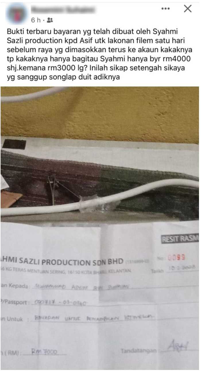 Perkara tersebut terpaksa didedahkan kerana tidak tahan dengan fitnah yang dilempar bapa sendiri kepadanya yang dikatakan mengambil duit hasil kerja Asif sewaktu terlibat dalam projek Syahmi Sazli.