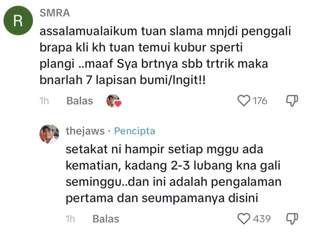 Menurut pemilik video yang juga merupakan penggali kubur di kawasan berkenaan, kejadian seperti itu merupakan kali pertama berlaku sepanjang dia menguruskan pengebumian jenazah di lokasi terbabit.