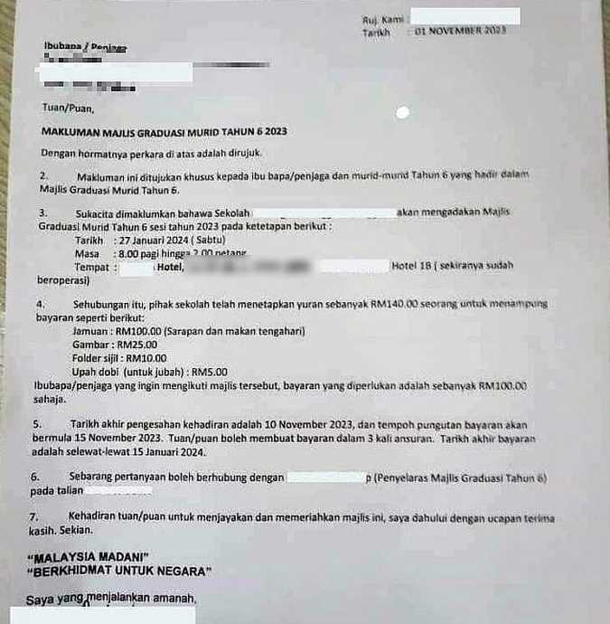 Sebelum ini tular surat mengenai yuran untuk menampung kos majlis graduasi.