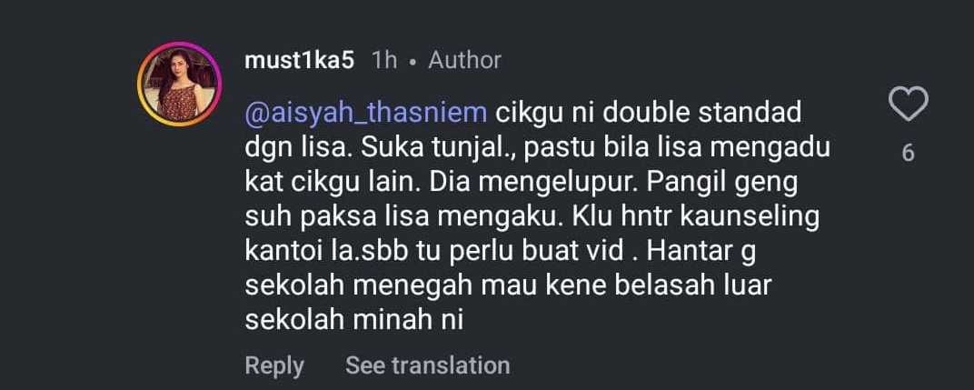 4-5 guru kepung dia, panggil 1 kelas suruh cakap Lisa tipu…Di kantin ada pelajar lain