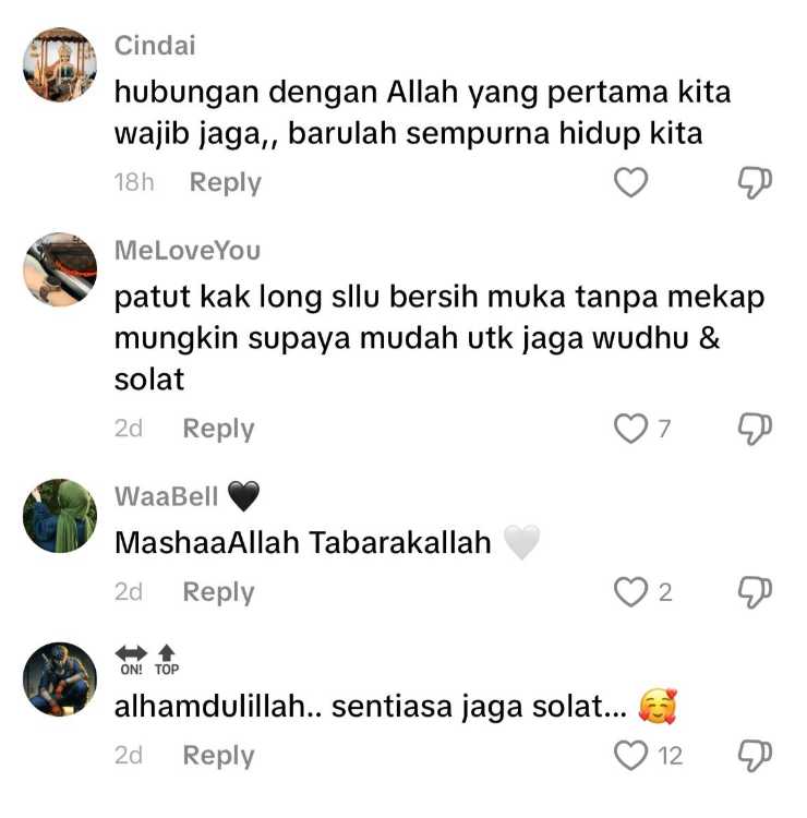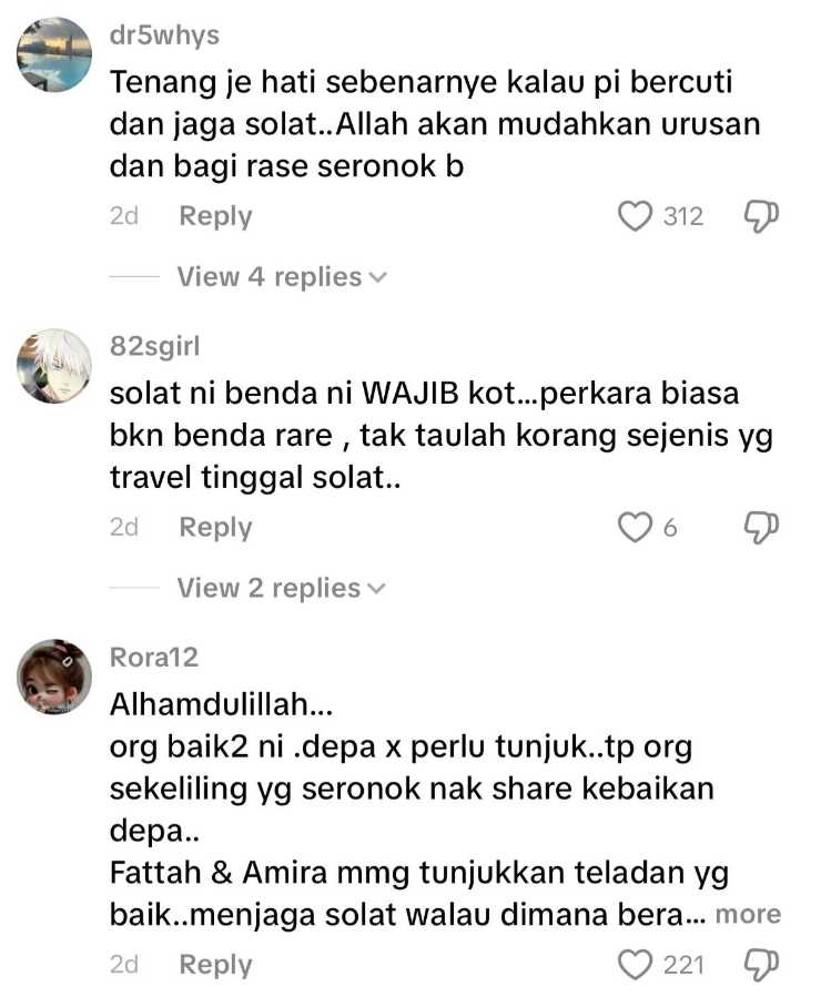 • “Tenang je hati bila lihat selebriti jaga batas dan solat walau ke luar negara.”