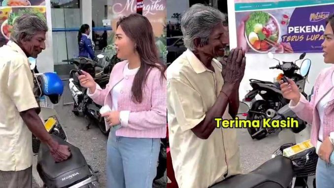 Bagaimanapun, pak cik itu menolak wang ringgit daripada wanita berkenaan dan memintanya untuk memberikan bantuan berkenaan kepada orang lain.