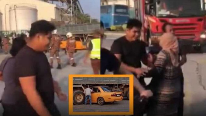 Proton Wira terperosok bawah treler, pemandu maut… Wanita meraung gagal tahan sedih – “Dia bawa lori tak tengok orang ke?”