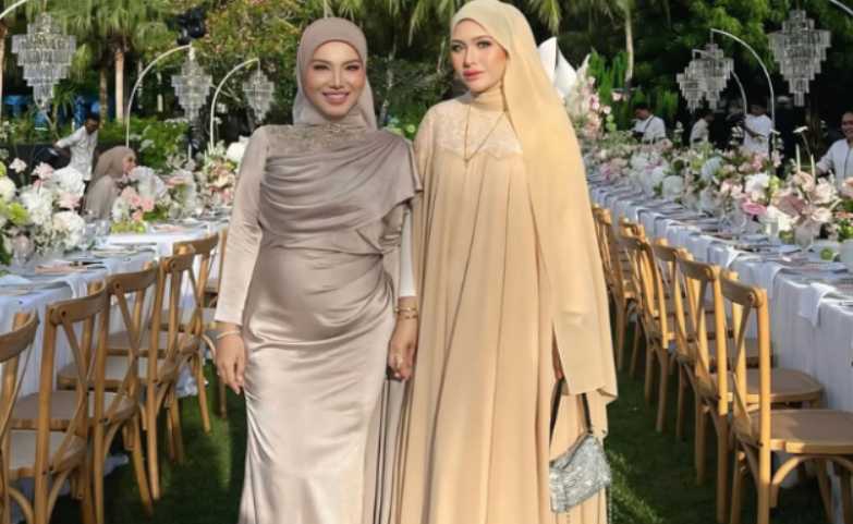 Watie atau nama sebenar Fati Nikmatul Adawiyah Hanifiah kelihatan anggun mengenakan busana berona coklat di majlis tersebut.