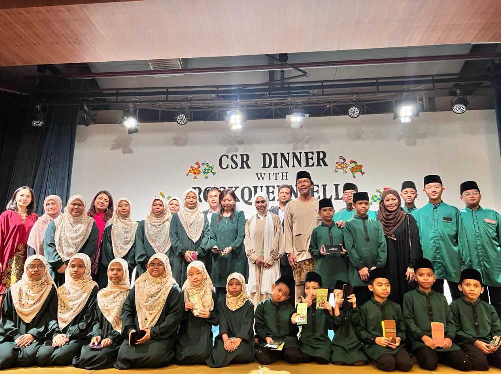Ella dan suami, Azhar Husaini Ghazali (tengah) bersama anak-anak yatim rumah bakti Nur Syaheera pada majlis sambutan ambang Ramadan di Hotel Saujana Kuala Lumpur.