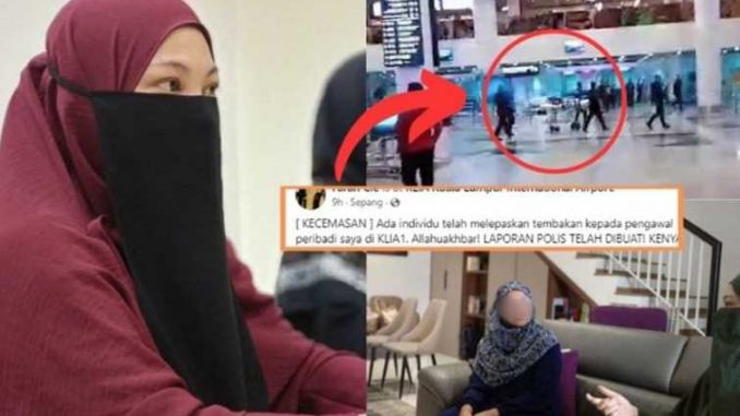 Terdahulu, seorang wanita menerusi hantaran di Facebook memaklumkan pengawal peribadinya ditembak ketika berada di KLIA 1.