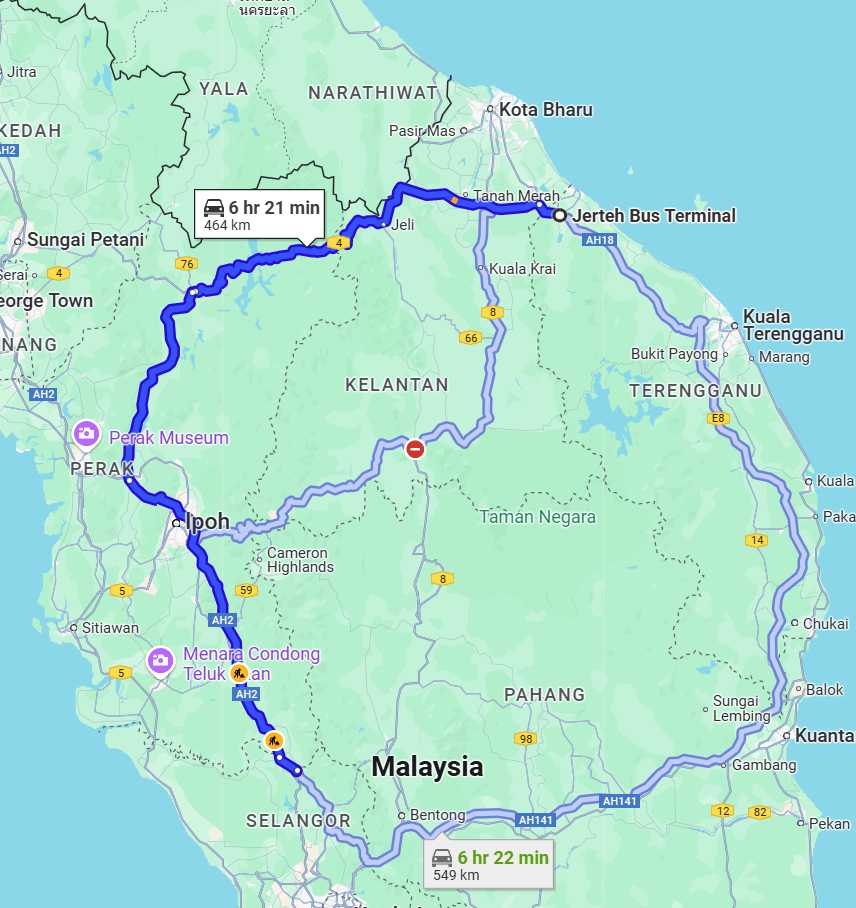 Biasanya bas ikut laluan Gua Musang, tapi kali ini pemandu guna laluan Gerik, mungkin untuk elak jalan sesak.