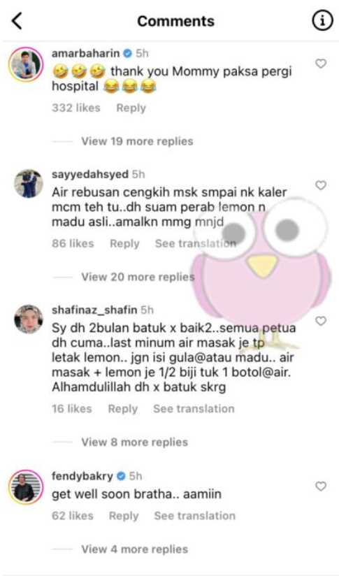 “Thank you Mommy paksa pergi hospital 😂😂.”-Amar Baharin
