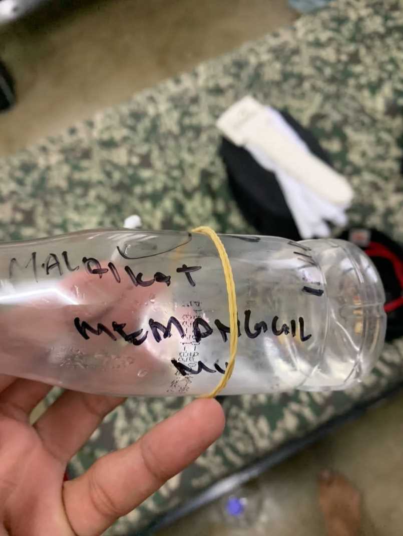 Botol tersebut dijumpai di bilik adiknya dipercayai ditulis beberapa hari sebelum melapor cuti hujung minggu selama tiga hari.