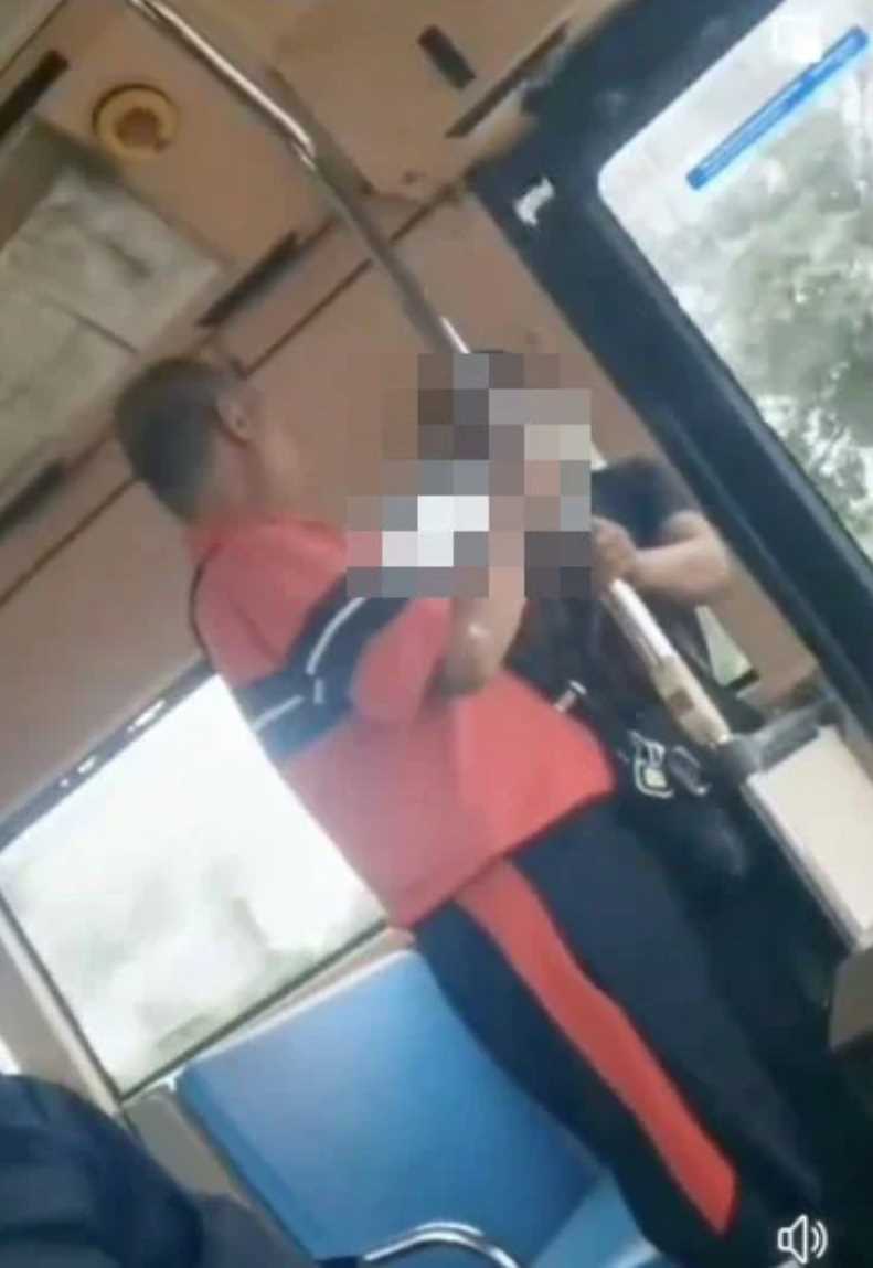 Menerusi video berdurasi, dilihat seorang lelaki memakai baju berwarna merah hitam datang duduk di sebelah seorang lagi penumpang sebelum memarahinya.
