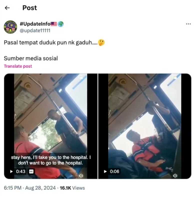 Tular di platform X memaparkan pertelingkahan antara dua pakcik berebut tempat dalam bas sehingga menarik perhatian warganet dan menerima pelbagai reaksi.