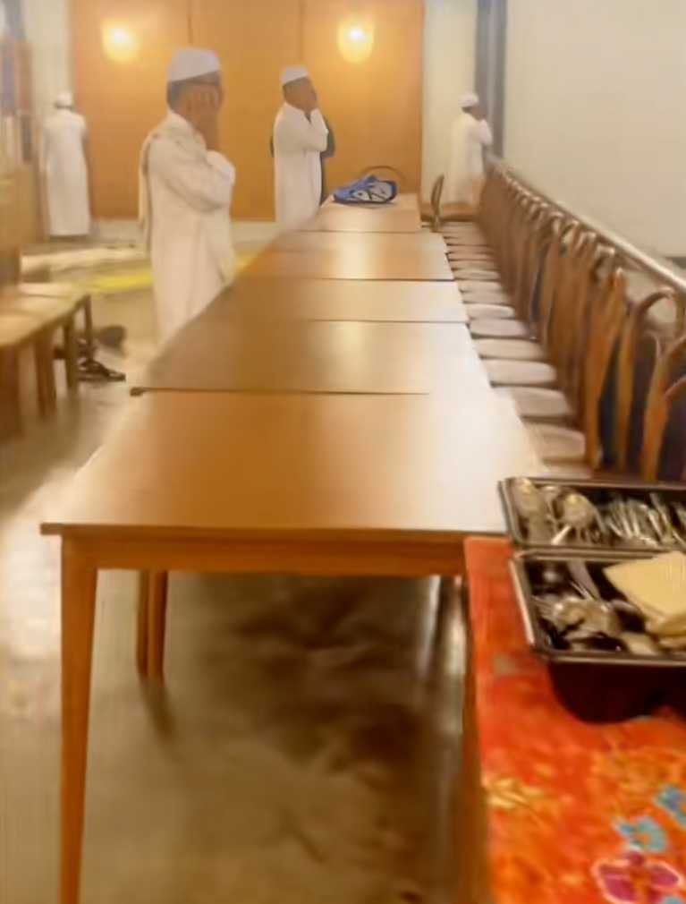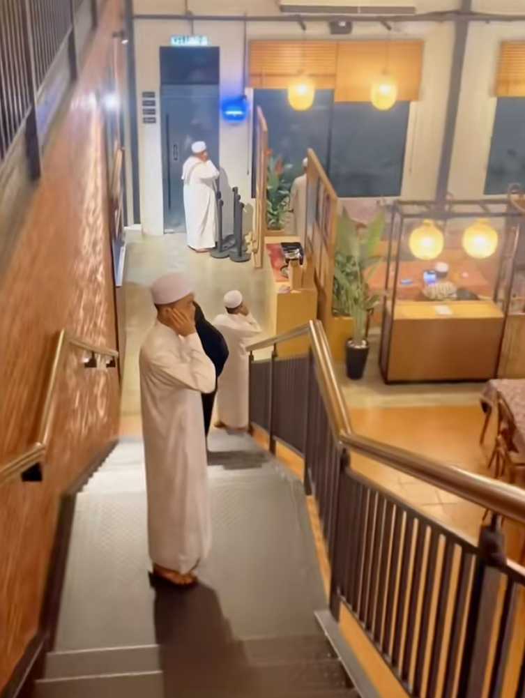 • Mereka dilihat bergerak dari satu ruang ke ruang lain, termasuk di tingkat atas dan bawah, sementara beberapa dewasa mengikut dari belakang sambil merakam suasana, seolah-olah memagari setiap sudut restoran dengan kalimah suci.
