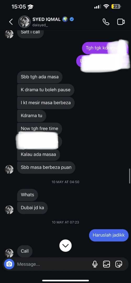 “Tetapi dia tetap mengganggu saya dengan ‘jom call’, ‘nak call’ (saya tak pernah angkat tau bercakap dengan dia melalui telefon),” katanya.