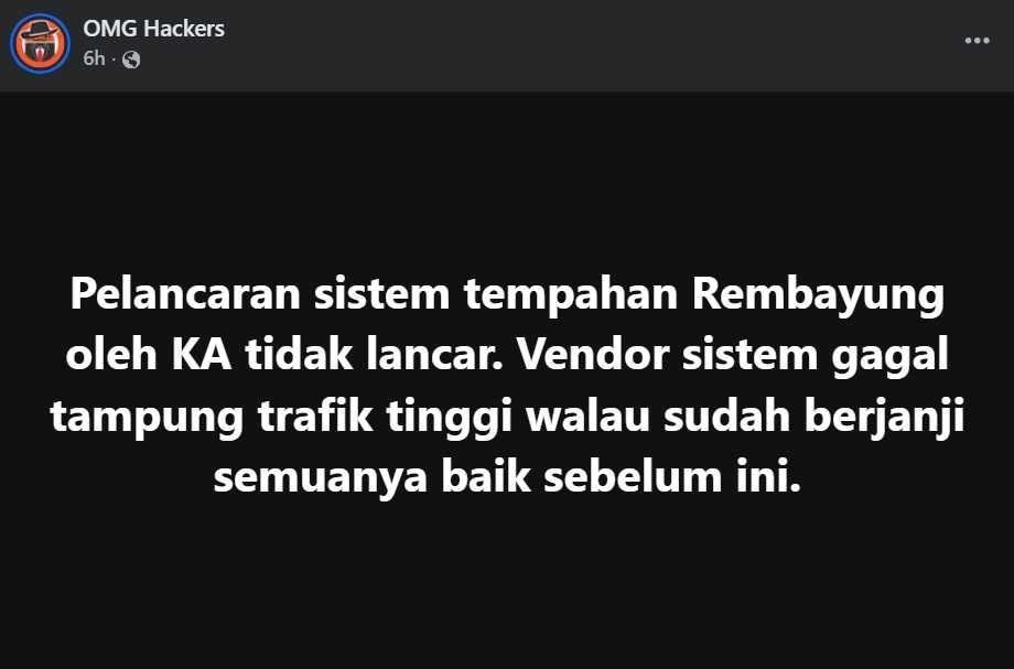 • Page teknologi OMG Hackers menulis bahawa vendor sistem tempahan gagal menampung trafik tinggi “walau sudah berjanji semuanya baik sebelum ini,” sekali gus menimbulkan persoalan tentang tahap persediaan infra di belakang tabir.